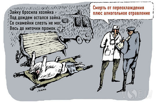 - Хоть бы стопку налила, а то в горло не лезет ни хрена. (с просьбой)