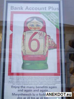 Реклама в одном из Банков Северного Уэльса в Великобритании: