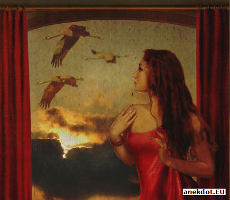 и женщине вручает - пусть напьется.
