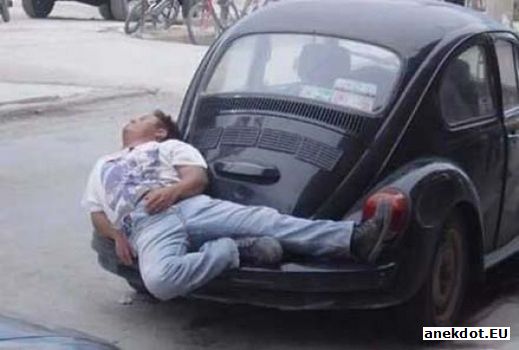 Очень мешал встречный ветер с мошкой и пылью. Тут на помощь пришли солнцезащитные очки, подаренные тещей. Правда, когда Колян доставал их из бардачка, под бычьей мордой, одно стекло из очков вылетело и упало в лужу на коврике. Колян надел очки с одним стеклом и так, прищурившись на один глаз, выехал на трассу. Весьма экзотический вид предстал перед дальнобойщиками и автотуристами на трассе Москва - Ростов.