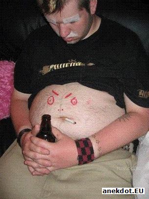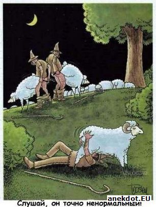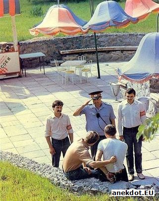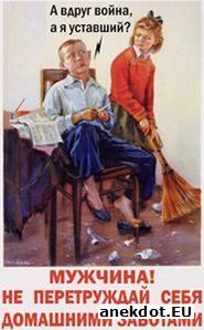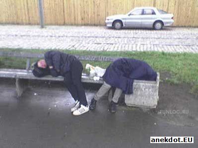 Жена посылает мужа на рынок за улитками для косметического ухода за кожей. По дороге муж встречает друзей и на три дня попадает в запой, естественно, не приходя домой. Наконец на третий день вспоминает об улитках, идёт на рынок, покупает улиток и приходит домой. Думает, чтобы сказать жене, почему его так долго не было. Звонит в дверь, жена открывает, он высыпает улиток на пол и, подгоняя их руками, говорит: - Ну вот, пришли! Заходим, заходим, заходим... |