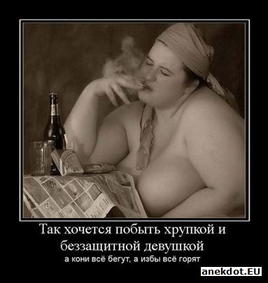 Семья смотрит телек. Вдруг сын: -Мам, давай возьмём котёночка, пожалуйста! Мать: - Нет. Вырастет, будет писить и какать по углам. Сын: -А можно тигрёночка? Отец: -Нет, Когда он вырастет,писить и какать по углам будем мы. |